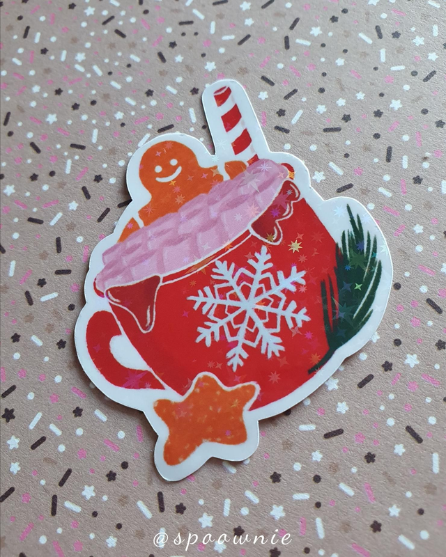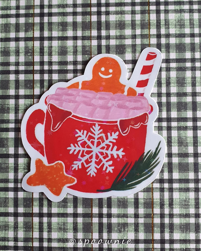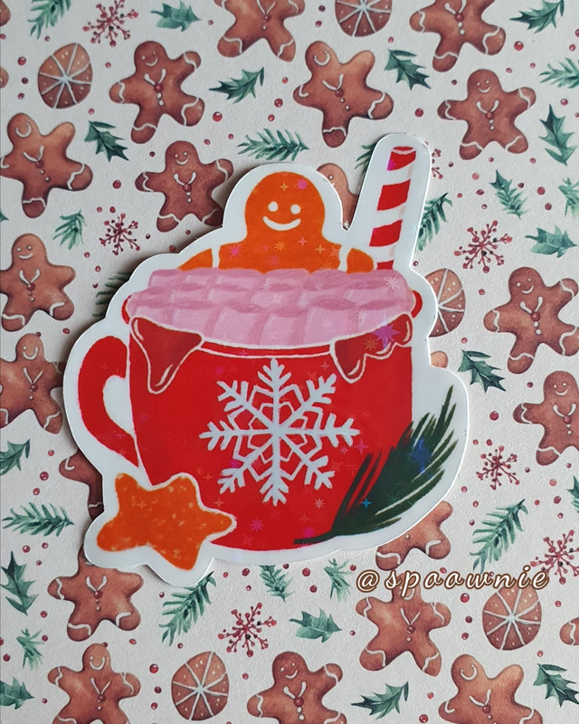 Stickers Bonhomme de Pain d'épices dessiné par mes soins, qui scintille grâce à un effet étoilé ajouté à l'impression. Espérons que la magie de Noël s'empare de votre journal, votre agenda ou encore votre lettre au Père Noël ?