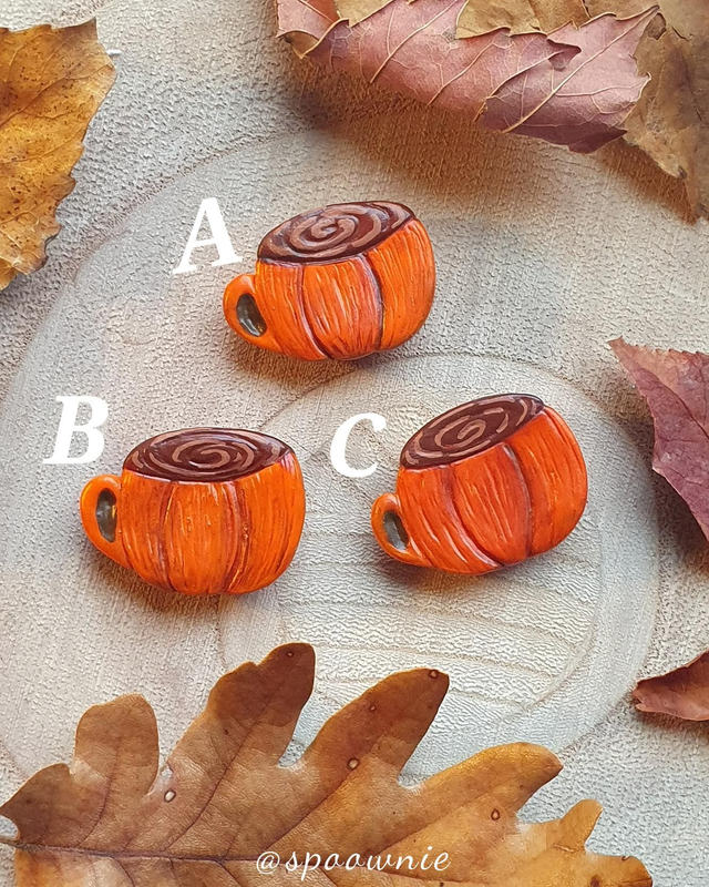 Magnet mug citrouille fait mains en pâte polymère, peinture acrylique puis vernis. Effet en relief.